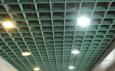 格柵吊頂是具有一定的承載能力并且具有裝飾性的鋼格柵板產品,由一定尺寸普通Q235低碳扁鋼、不銹鋼、黃銅板、鋁板經開槽(孔)、插接、焊接、精整等工序制造而成。本產品具有焊點牢固、孔距均勻、網面平整,設計美觀,實用等特點,既是使用品,又是藝術品。