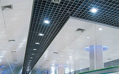 格柵吊頂廣泛適用于煙草制造、工業廠房、大型體育場館、會展中心、大型商業、車站、碼頭、機場等工業及民用建筑的吊頂。